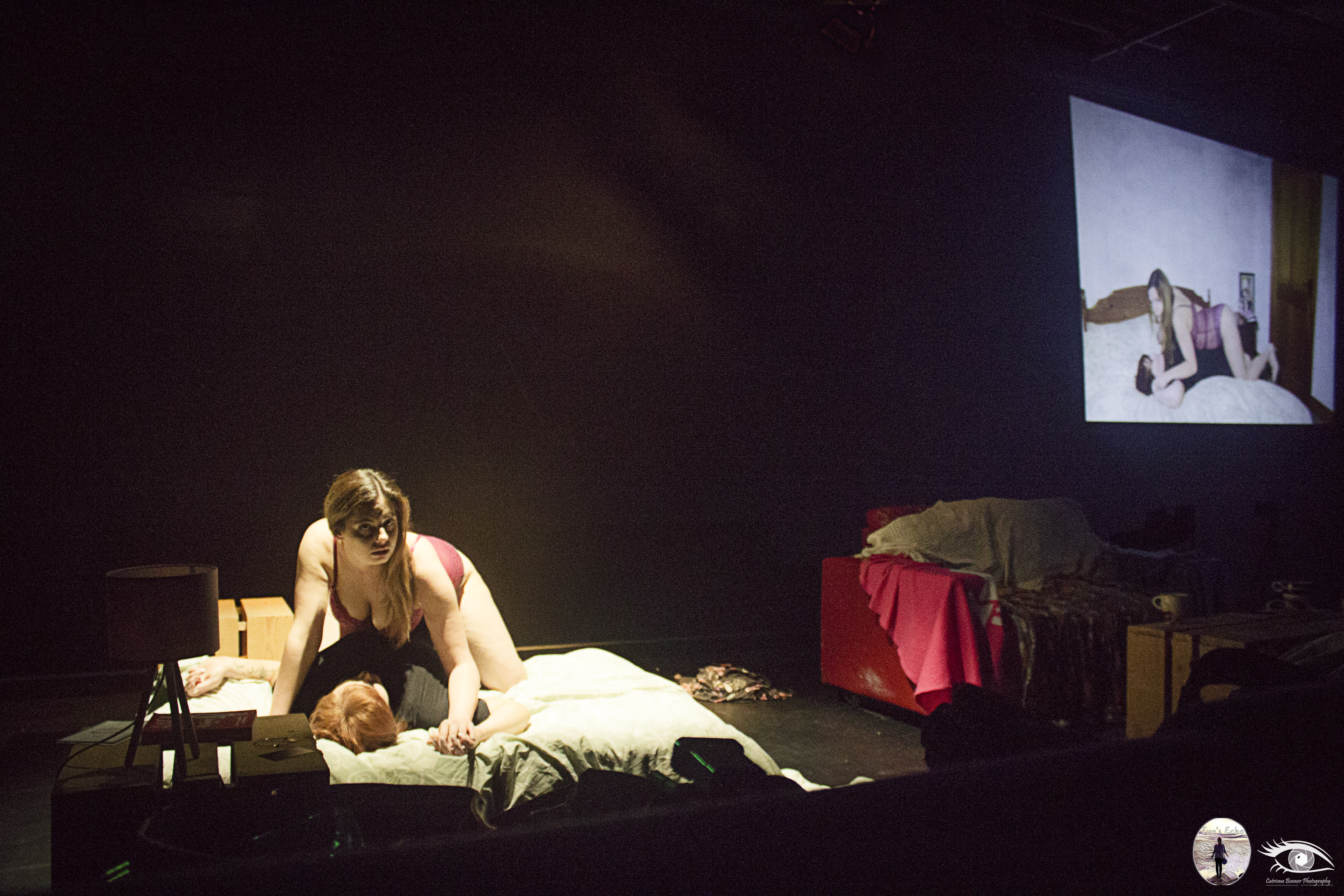 I wished to spark a conversation about sexual consent and technology following the final scene of the play. Following her brother’s death Mia compulsively creates content about the tragedy. Leaning on social media in a crisis similar to the way someone else may turn to drink, cigarettes or drugs in a time of great stress. Her partner Sandra scolds her for recording the funeral which leads to a fight, after which Mia loses a YouTube subscriber and goes over the edge. Focused only on her goal to gain online attention she places a camera by the bed and hits record before making up with Sandra and convincing her to have sex. Sandra consented to have sex with Mia but she couldn’t consent to the recording as she wasn’t even aware it was happening. In a digital age this is a scenario that is unfortunately not that far fetched and is worth discussing.
